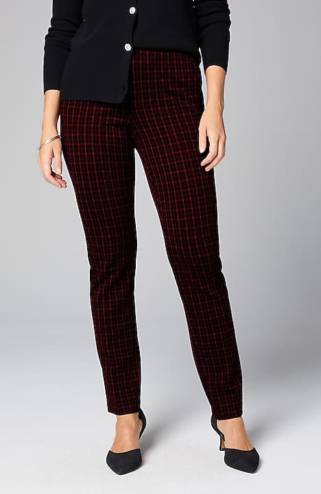 For something a little more festive, the Multi-Tweed Turtleneck Sweater caught my eye. The multi-tonal fabric has a subtle shimmer that makes it feel dressier than your average sweater. I paired this with the Ponte Welt Pocket Slim Leg Pants for a polished outfit I wore to a casual holiday dinner. The fit is just perfect—snug but not tight, with enough stretch to keep you comfortable all evening.